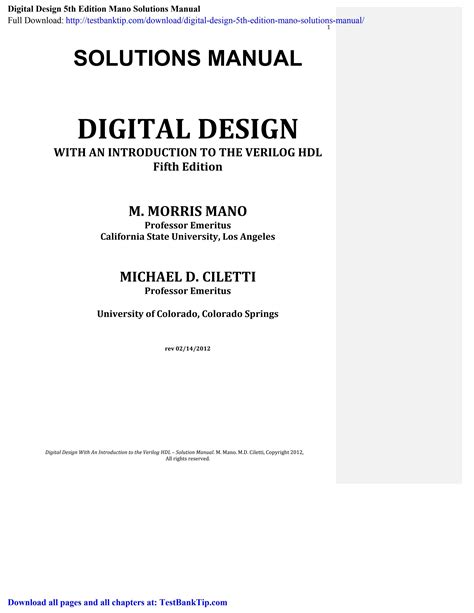Read Digital design mano 5th edition solution manual PDF Library Genesis